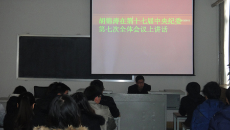 在集中学习中,每个小组同学和大家交流了学习《中国共产党党员领导干部廉洁从政若干准则》和《胡锦涛在第十七届中央纪委第七次会议上的讲话》的体会。同时与会党员就学习小组同学的发言进行了热烈讨论,也交流了自己的学习体会。整场会议学习气氛浓郁,掌声不断。