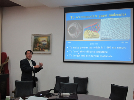 10月17日上午,澳大利亚昆士兰大学生物工程及纳米技术研究所余承忠教授应邀在365英国官网二层学术会议室作了题为《纳米多孔材料的自组装及应用研究》的学术报告。365英国官网部分教师及硕、博士研究生参加了报告会。