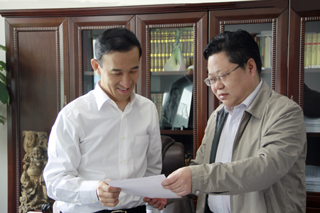 张福国书记向校友们介绍了学校目前新形势下的新发展趋势,并对新校区建设以及校庆筹备的各个方面的具体进展情况作了详细介绍。李瑞丰院长对校友们为母院所作的贡献表示感谢,希望以后进一步加强与各单位及校友的合作。最后,学院领导热情邀请校友们在校庆之际能回来重温母校风采,感受母校发展变化,共商学校发展大计。