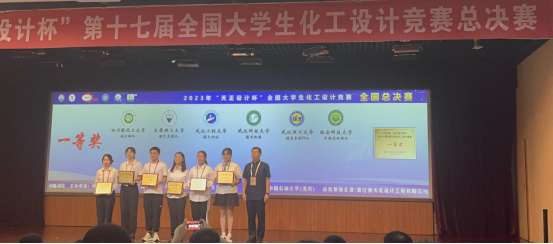 8月16~22日,在中国化工学会、中国化工教育协会主办的2023“天正设计杯”第十七届全国大学生化工设计竞赛全国总决赛中,2020级杜昕宇、姚舜、吕怡恬、李聪、李烨琪组成的“精艺求腈”队,在盛清涛、邱丽、牛艳霞、闫晓亮、张玮老师的指导下,荣获全国总决赛一等奖。全国共有432所高校的3391支队伍报名参加本届赛事,最终共有60支队伍进入全国总决赛。