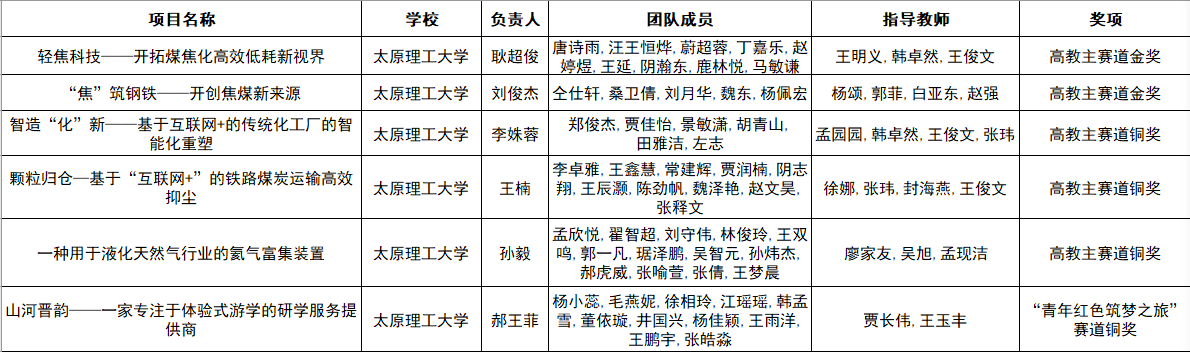 365英国官网《轻焦科技——开拓煤焦化高效低耗新视界》《“焦”筑钢铁——开创焦煤新来源》两个项目荣获高教主赛道金奖;《智造“化”新——基于互联网+的传统化工厂的智能化重塑》《颗粒归仓—基于“互联网+”的铁路煤炭运输高效抑尘》《一种用于液化天然气行业的氦气富集装置》三个项目荣获高教主赛道铜奖;《山河晋韵——一家专注于体验式游学的研学服务提供商》项目荣获“青年红色筑梦之旅”赛道铜奖,学院创新创业教育成果再次取得新突破。
