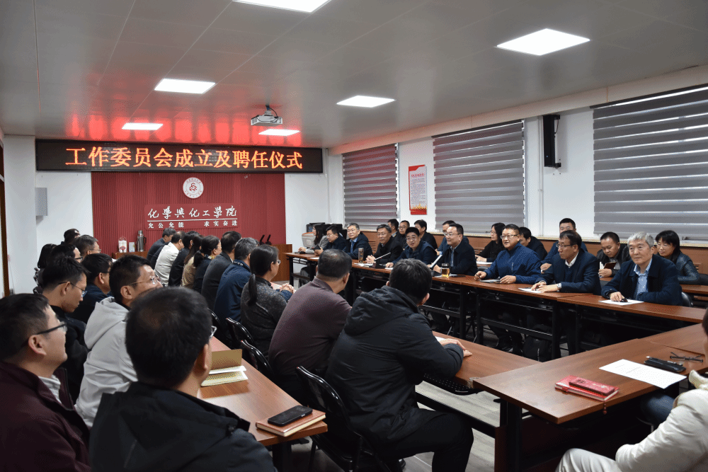 为了更好地促进学院在学科建设、学术研究、教学质量、学位评定及实验室建设与安全管理等方面高质量发展,11月5日下午,在化工馆三层会议室举行了工作委员会成立及聘任仪式,班子成员及各工作委员会委员参加了此次仪式,会议由院党委副书记李冬雪主持。